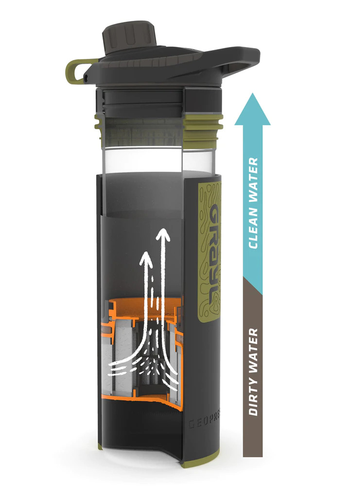 Das Reinigungs- und Filtersystem von Grayl® ist einfach und schnell zu nutzen. In nur 8-15 Sekunden wird Wasser aus jeder erdenklichen Quelle zu Trinkwasser gereinigt. Der äußere Behälter wird mit dem kontaminierten Wasser befüllt und, durch das Pressen der inneren Filtereinheit in den Behälter, gereinigt. Im Anschluss kann, ohne Umfüllen, direkt aus der Flasche getrunken werden.